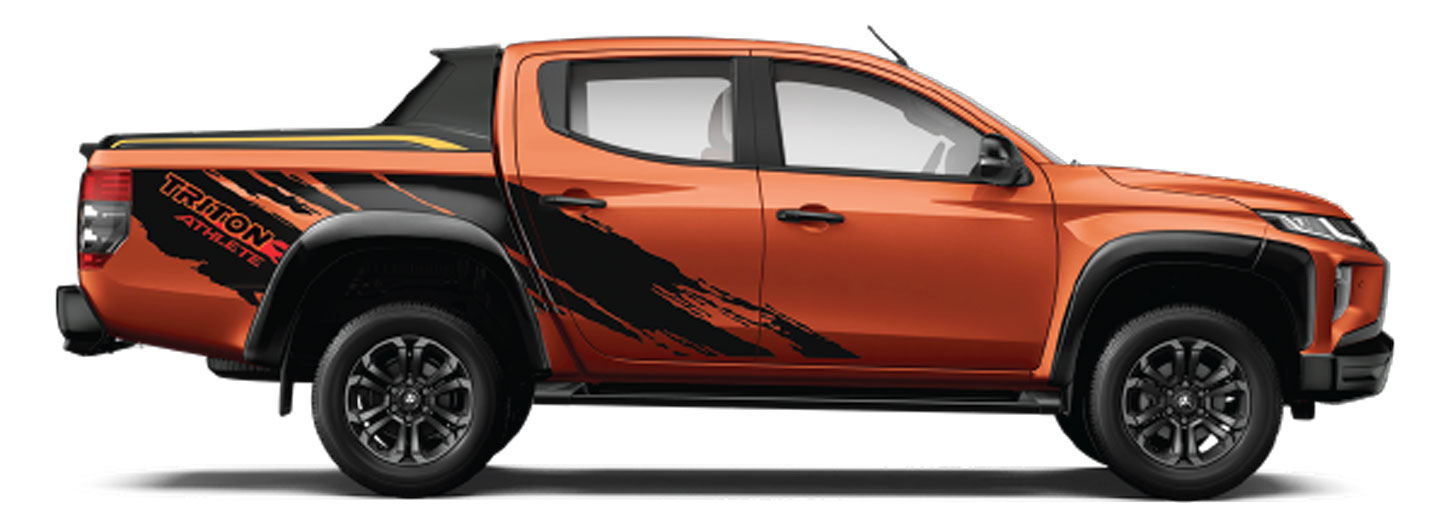 Hai phiên bản Triton Athlete mang ngoại hình mạnh mẽ, thể thao, nay hầm hố hơn nhờ những trang bị phụ kiện đặc biệt được sơn đen như ốp cản trước thể thao, lưới tản nhiệt, gương chiếu hậu, mâm xe hợp kim, ốp vè, thanh trang trí thể thao và thiết kế tem xe Athlete chính hãng